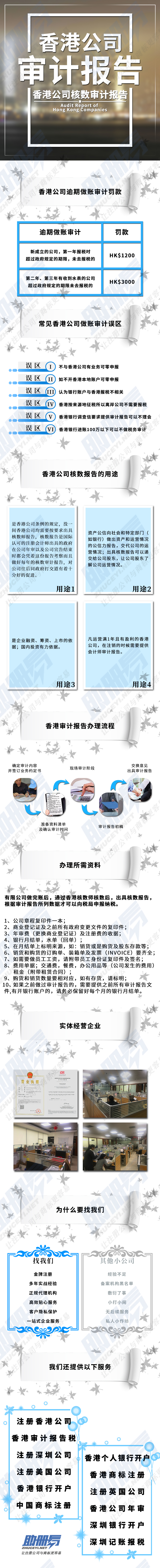 每一間香港公司均需要按要求出具核數(shù)師報告,核數(shù)報告是國際認可的注冊會計師出具的,政府在公司年審以及公司宣告結束時都會憑著這份報告考察,而且做好每年的核數(shù)審計報告,..